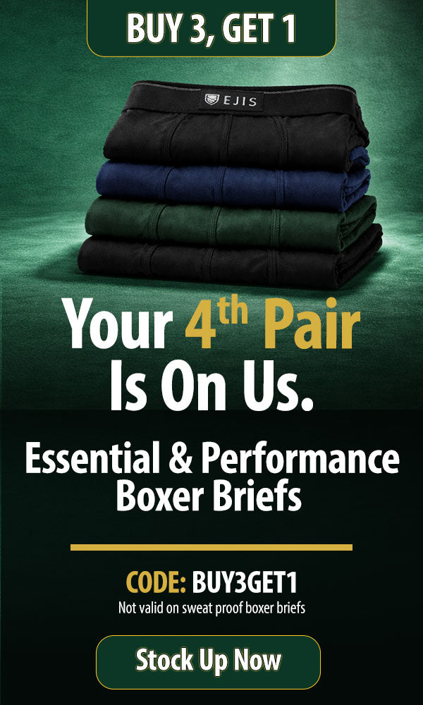 Experience freedom from embarrassing sweat marks and odors with Ejis men’s sweat proof undershirts and sweat proof boxer briefs. Say goodbye to antiperspirants that fall short and hello to Wearable Confidence™.